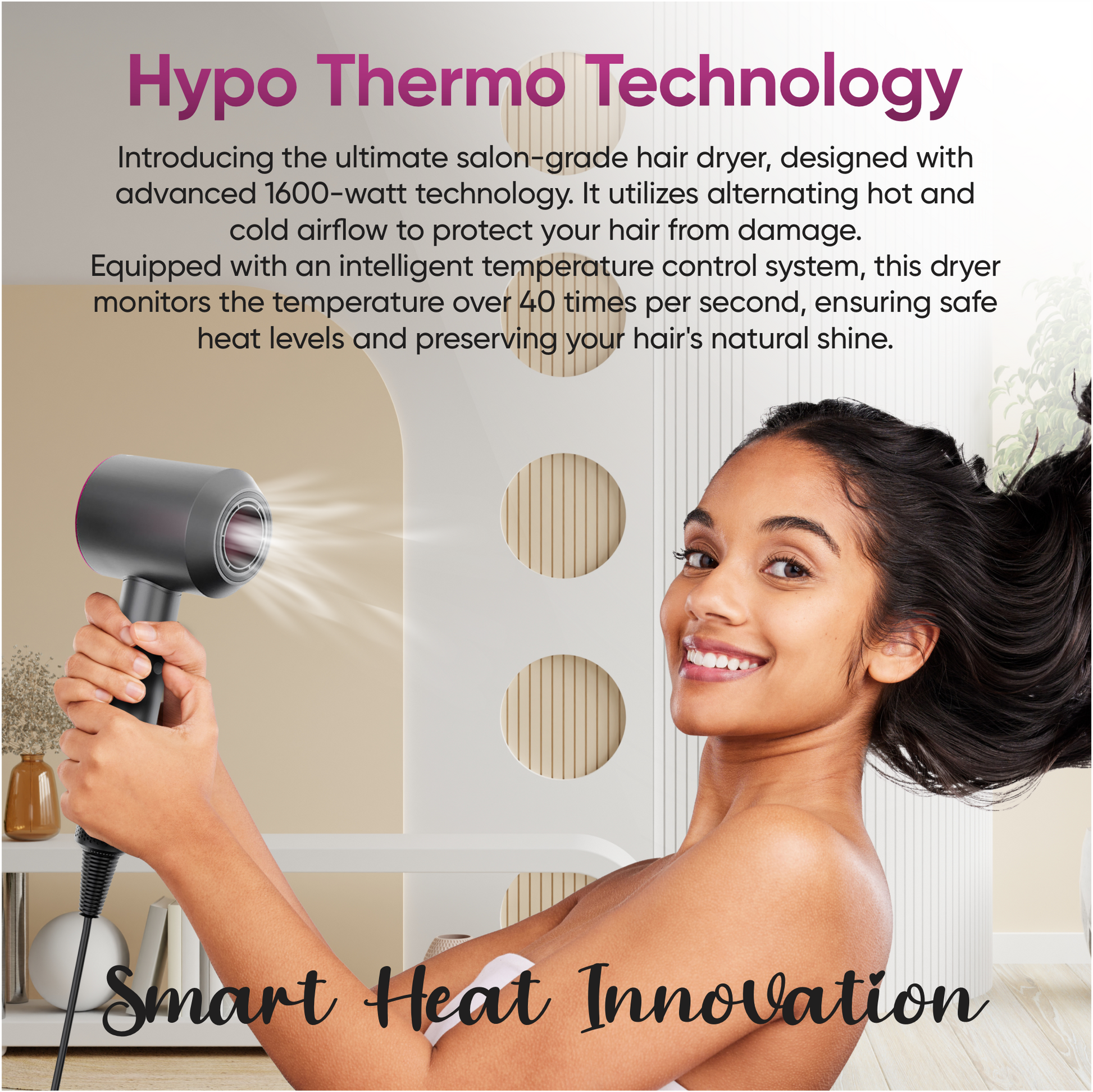 - Intelligent Heat Control: Measures air temperature 40 times a second to prevent extreme heat damage and maintain your hair's natural shine.